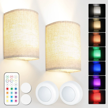 RGB LED 벽 램프 패브릭 쉐이드 배터리 충전식 리모컨 조광 가능 가정용 조명 침실 거실