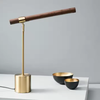 Lámpara de mesa de grano de madera con Base de Metal de estilo moderno, pantalla de cono de cuerpo de Metal de alta calidad, batería LED, dormitorio, sala de estar, lectura